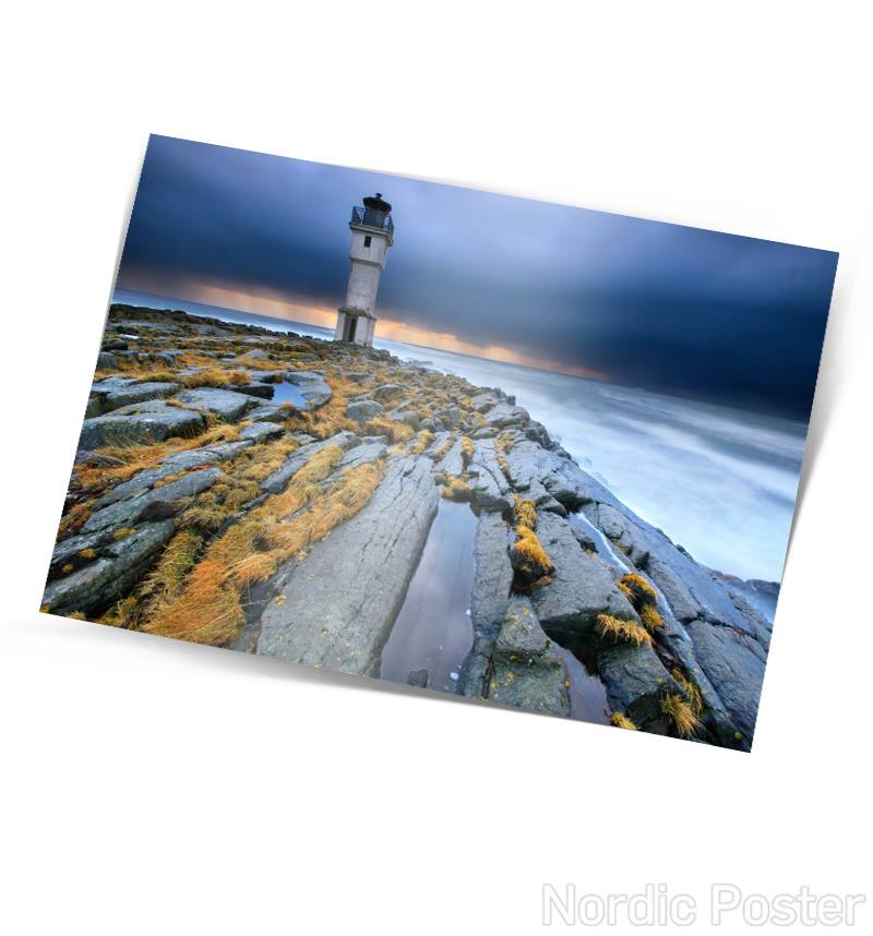 Fallegt einfalt póstkort með mynd af Akranesvita eftir Örvar Atla Þorgeirsson.