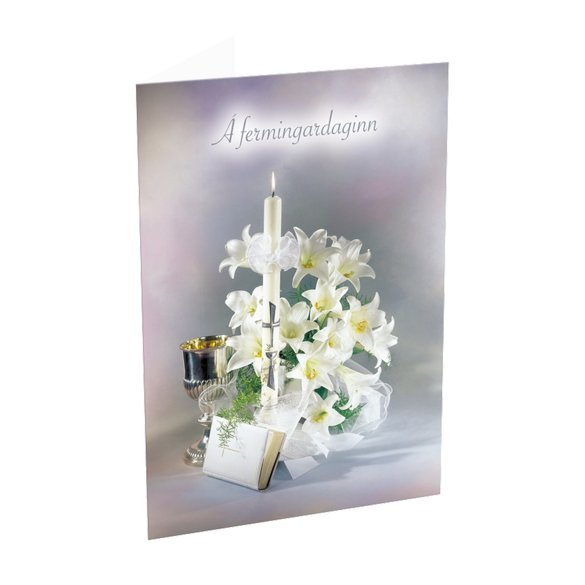 Tvöfalt fermingarkort í stærð A6 með fallegri myndskreytingu. Umslag fylgir.