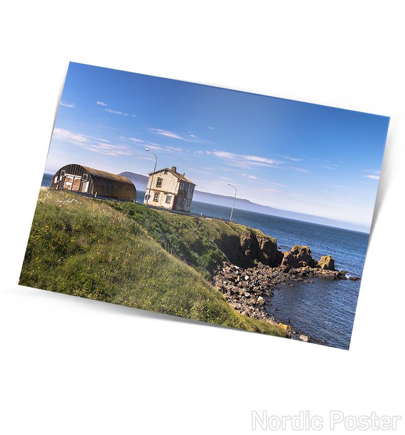 Fallegt einfalt póstkort með mynd frá Bakkafirði eftir Rafn Sigurbjörnsson.