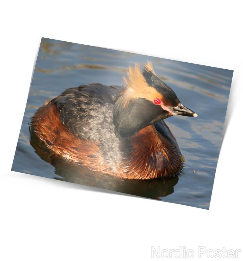 Fallegt einfalt póstkort með mynd af flórgoða eftir Sindra Skúlason.