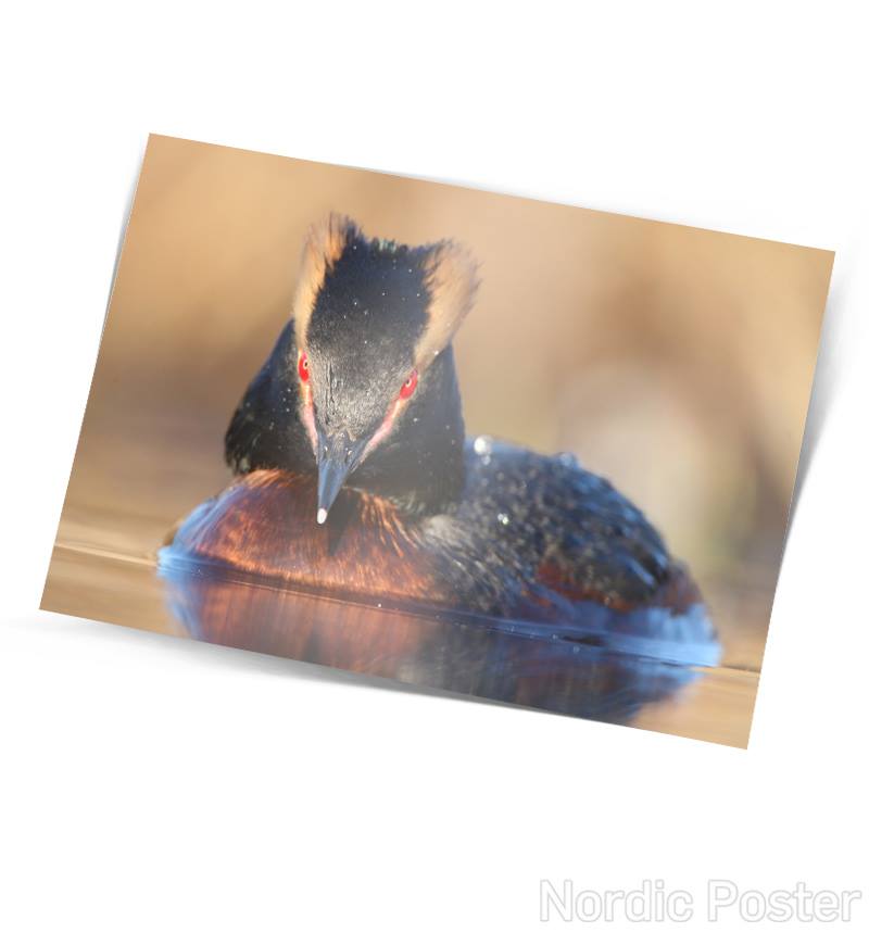 Fallegt einfalt póstkort með mynd af flórgoða eftir Sindra Skúlason.