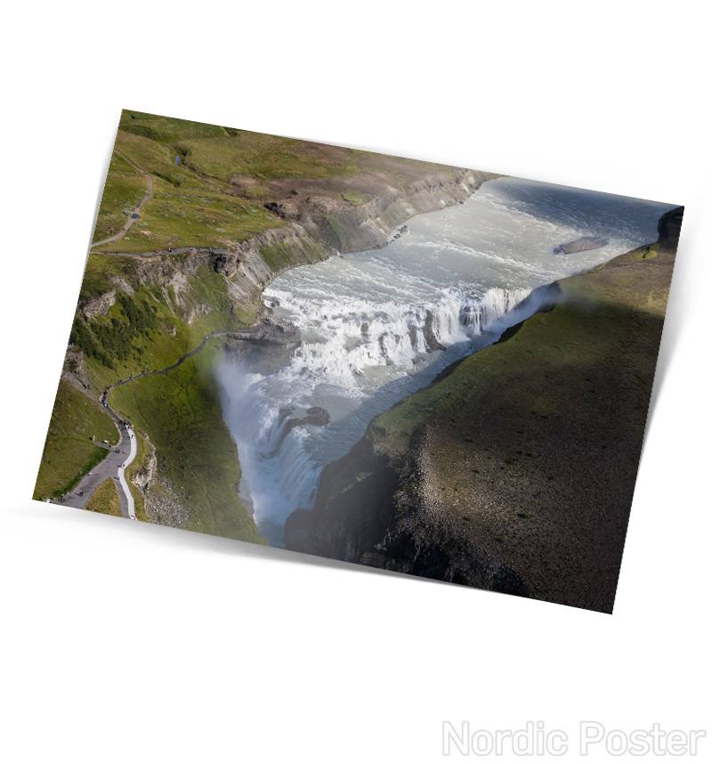 Fallegt einfalt póstkort með mynd af Gullfossi eftir Rafn Sigurbjörnsson.
