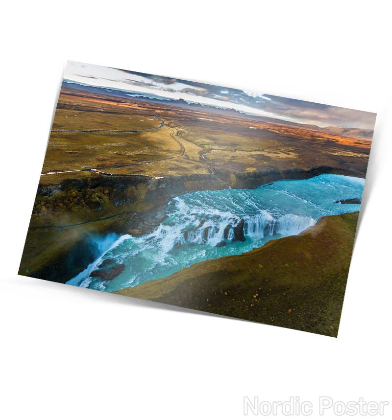 Fallegt einfalt póstkort með mynd af Gullfossi eftir Rafn Sigurbjörnsson.