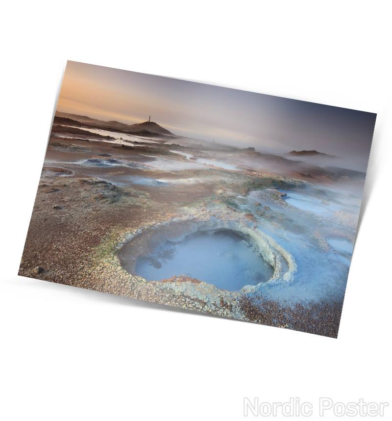 Fallegt einfalt póstkort með mynd af Gunnuhver á Reykjanesi eftir Örvar Atla Þorgeirsson.