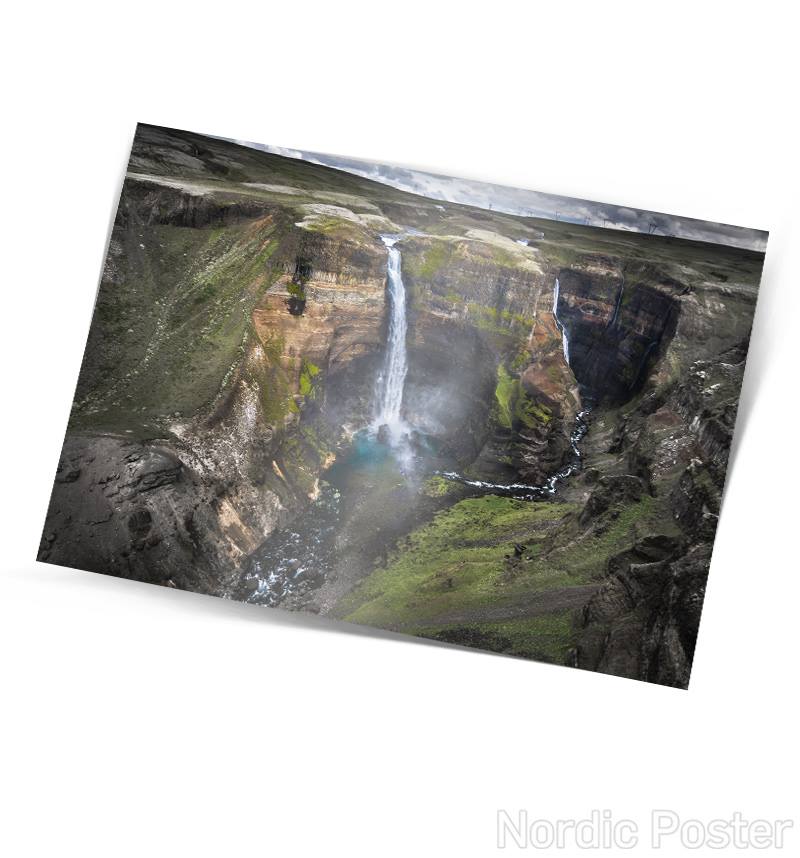 Fallegt einfalt póstkort með mynd af Háafossi í Þjórsárdal eftir Rafn Sigurbjörnsson.