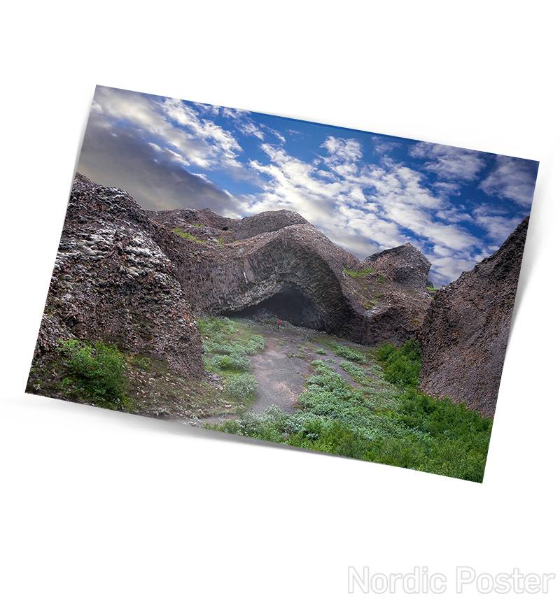 Fallegt einfalt póstkort með mynd af Hljóðaklettum eftir Rafn Sigurbjörnsson.