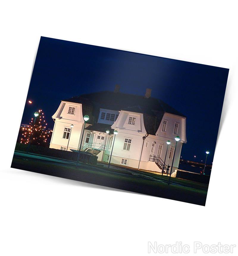 Fallegt einfalt póstkort með mynd af hinu sögufræga húsi Höfða eftir Rafn Sigurbjörnsson.