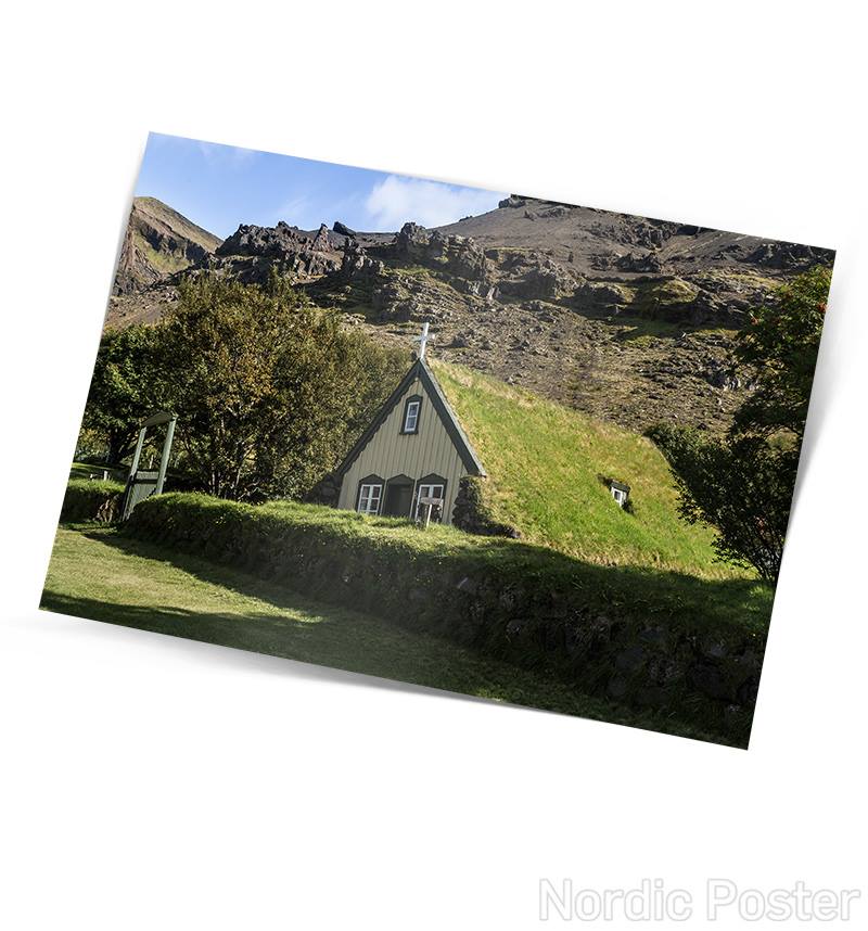 Fallegt einfalt póstkort með mynd af Hofskirkju eftir Rafn Sigurbjörnsson.