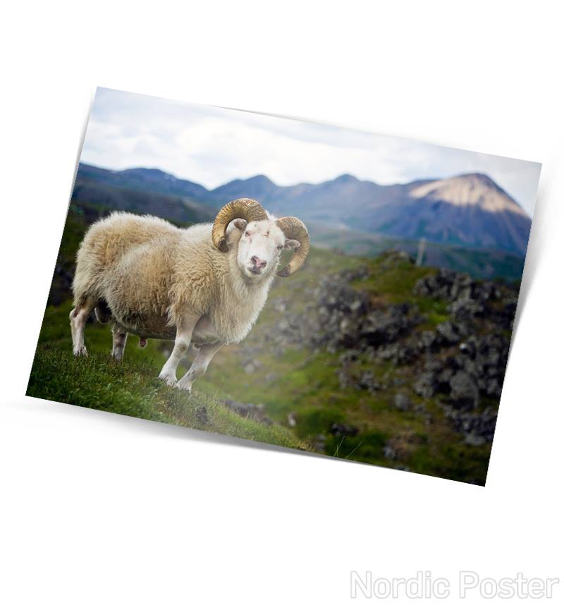 Fallegt einfalt póstkort með mynd af hrúti eftir Skarphéðinn Þráinsson.