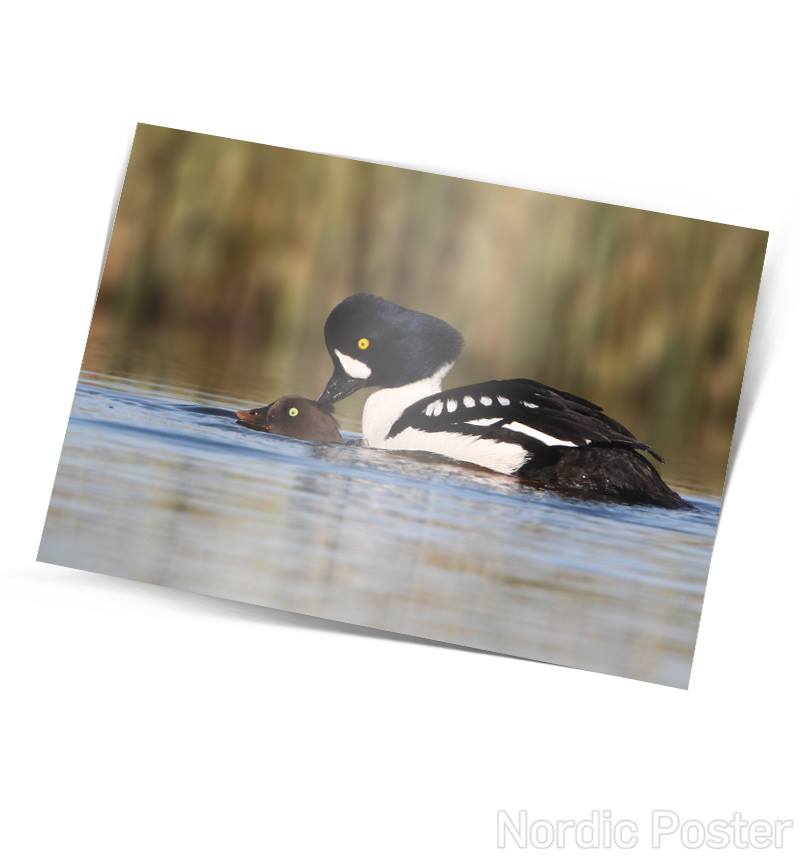 Fallegt einfalt póstkort með mynd af húsandarpari eftir Sindra Skúlason.