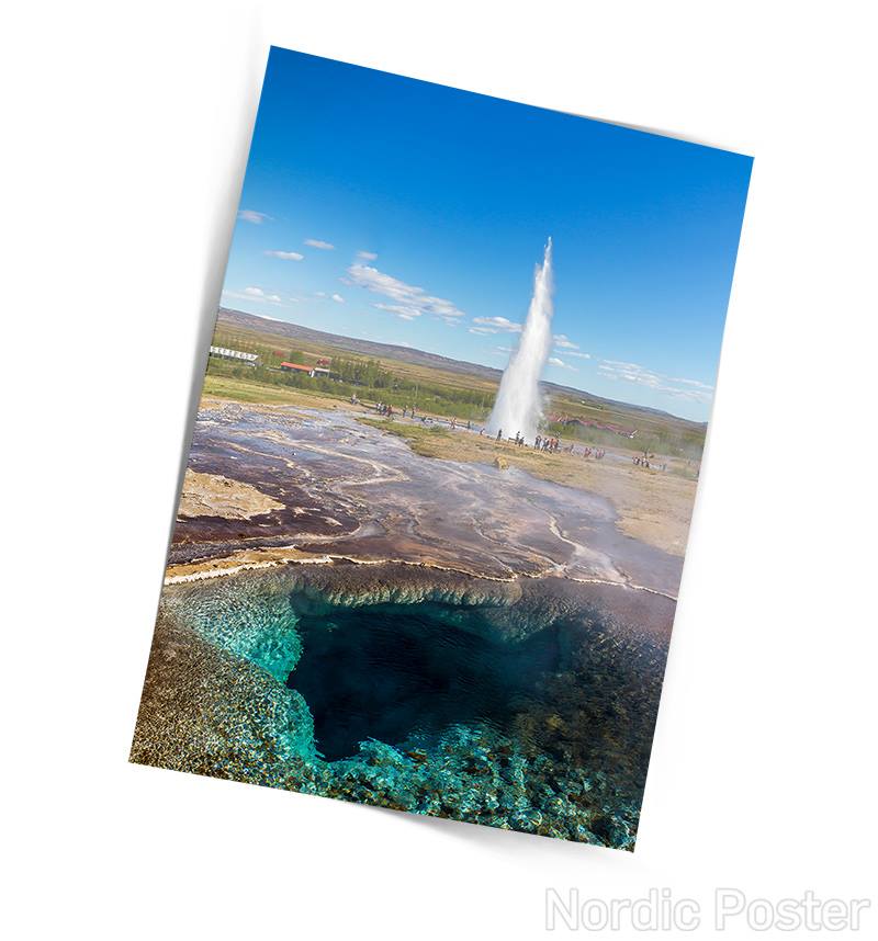 Fallegt einfalt póstkort með mynd af Strokki í Haukadal eftir Rafn Sigurbjörnsson.